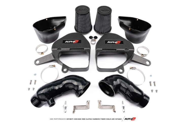 The INFINITI Q50/Q60 Red Alpha Carbon Fiber Cold Air Intake Kit is simply the best engineered, best performing, cold air intake system available for your INFINITI VR30 equipped Q50 and Q60. By letting the turbos ingest all the cold air they need, our intake system boosts power exactly where you want it, high in the rpm range. In addition, it allows you to hear your twin turbos spool up which is something you as an enthusiast can really appreciate. AMS Performance is excited to introduce the INFINITI Q50/Q60 Red Alpha Carbon Fiber Cold Air Intake Kit!